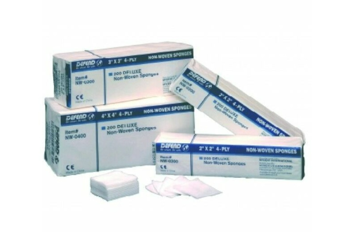 A great alternative to cotton filled sponges, DEFEND® Non-Woven Sponges are made from a 4-ply, 32 gram rayon/polyester blend which provides for maximum absorbency and little adhesion to wounds. -Soft -Smooth -Strong -Non-linting -Non-sterile