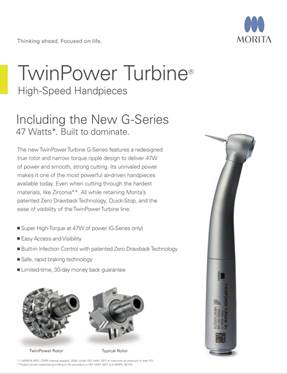 TwinPower Turbine handpieces are manufactured with a unique ceramic coating treatment that offers up to 30% greater friction forces, improving grip and durability throughout multiple sterilization cycles.